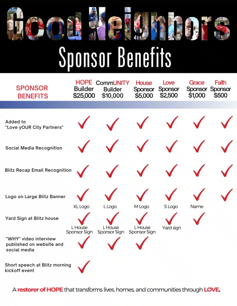 GOOD NEIGHBORS SPONSORSHIP OPPORTUNITIES